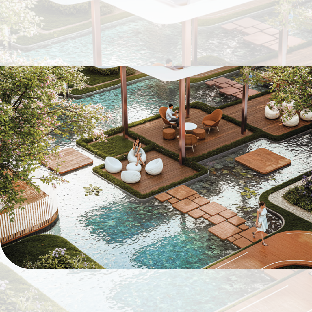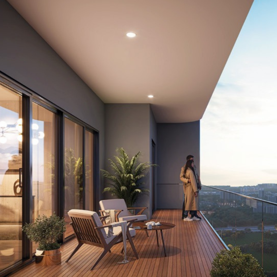 The community features five elegant towers rising amidst quiet avenues and open green spaces, offering a low-density lifestyle that prioritizes comfort, wellness, and privacy.